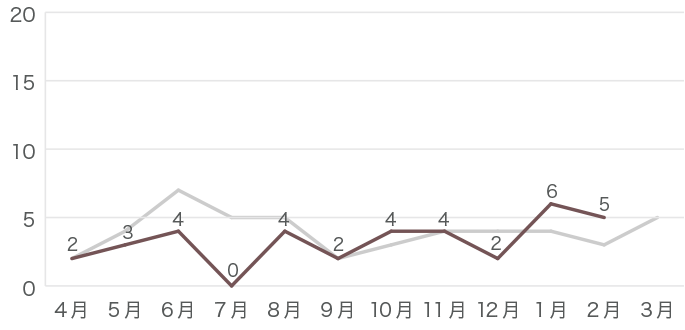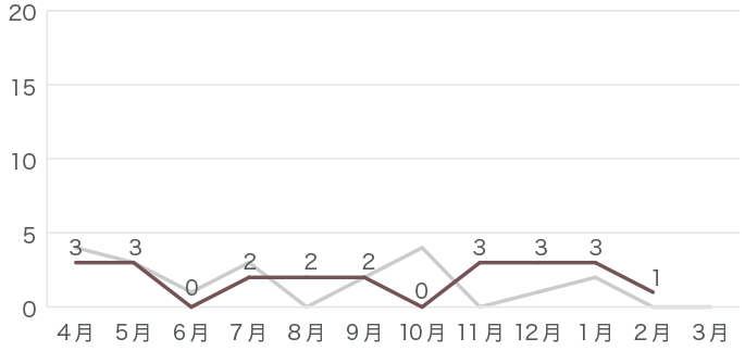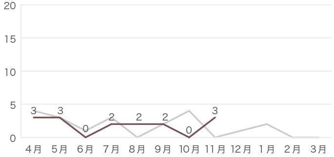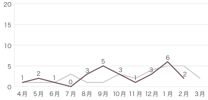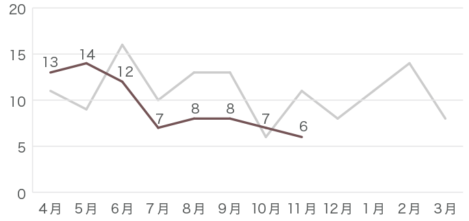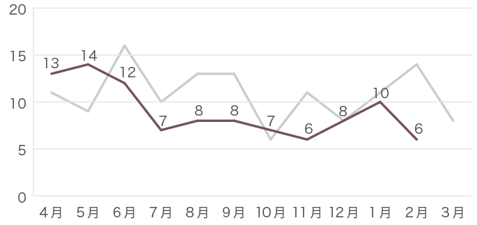 昨年のデータはグレーの線で示しています。
